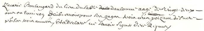 dOlonne (Poitou), Zacharie Boulangard sengage à 22 ans, le 3 juillet 1663,