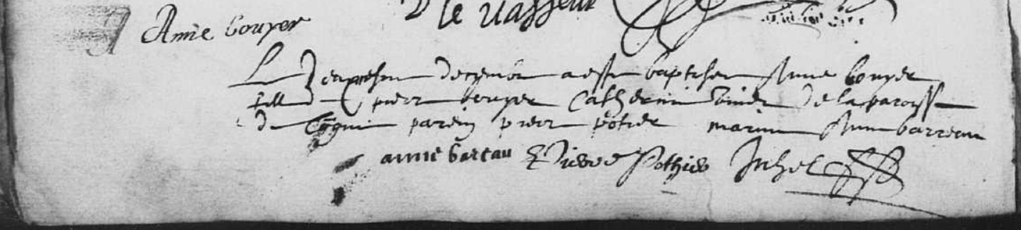 Catherine Vinet, Anne Bouyer est baptisée le 2 décembre 1632 dans la chapelle