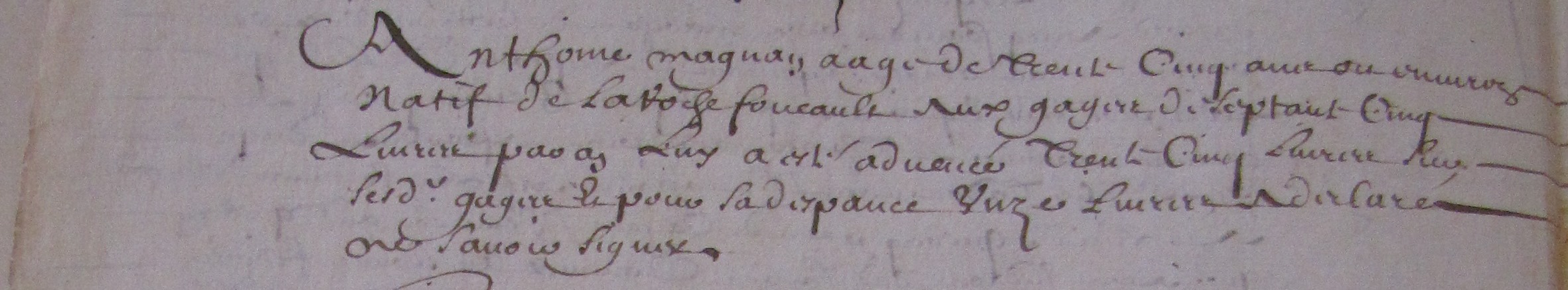 travailler durant trois ans à raison de 75 livres par an (avance de 35 livres). Ne signe