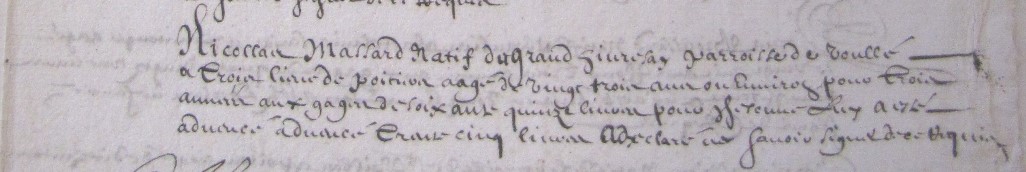 Yversay), il s’engage à 23 ans, le 14 ou 15 mai 1658, pour aller travailler durant
