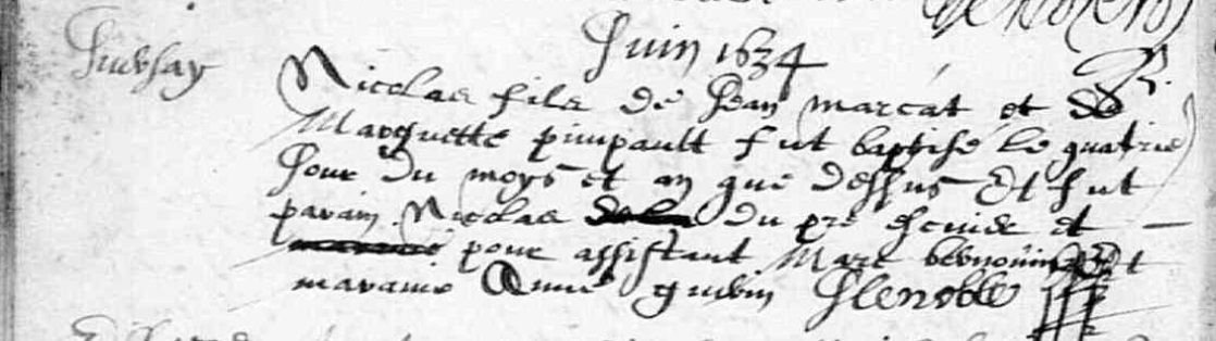 Pimpante, Nicolas Massard est baptisé le 4 juin 1634 dans la paroisse Sainte-Radegonde de
