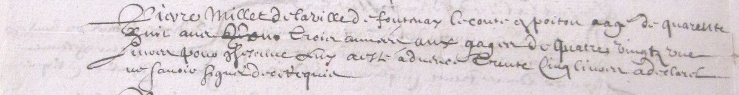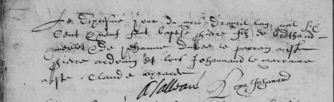 Jeanne Dubé, Pierre Millet (ou Meillet) est baptisé le 10 avril 1609 dans la paroisse