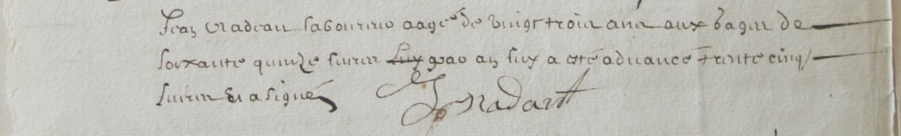 aller travailler durant trois ans à titre de laboureur à raison de 75 livres par an