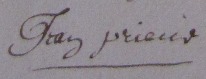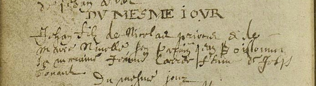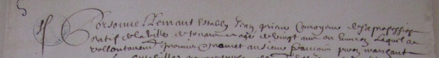 | Fils de Nicolas Prieur et de Marie Nivelle, Jean Prieur est baptisé le 30 septembre 1634 dans la paroisse Saint-Jean de Troyes (Champagne). Il s’engage à 20 ans, le 2 août 1655, pour aller travailler durant trois ans à titre de corroyeur pour le compte de Jean Bourdon à raison de 75 livres par an (avance de 35 livres). Il signe. Reçoit de François Peron, pour sa nourriture, 10 sols par jour jusqu’à son embarquement (7 livres). Il quitte La Rochelle le soir du 15 août à bord du Petit-François (50 tx) à destination de Québec. Après la prise de la barque par une frégate espagnole, il est mis dans un navire flamand. Il revient à La Rochelle le soir du 5 novembre. Il n’est pas venu au Canada en 1655. |