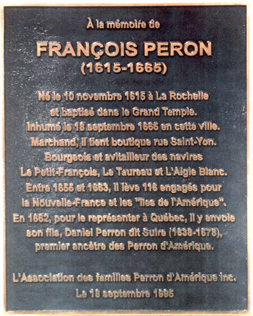1995, l'Association des familles Perron d'Amérique dévoilait une plaque commémorant le