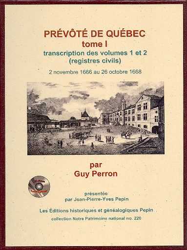 généalogiques Pepin. À ce jour, treize (13) tomes (de près de 500 pages chacun) sont actuellement disponibles représentant les vingt-quatre (26) premiers volumes (registres civils et criminels) de la Prévôté de Québec. |